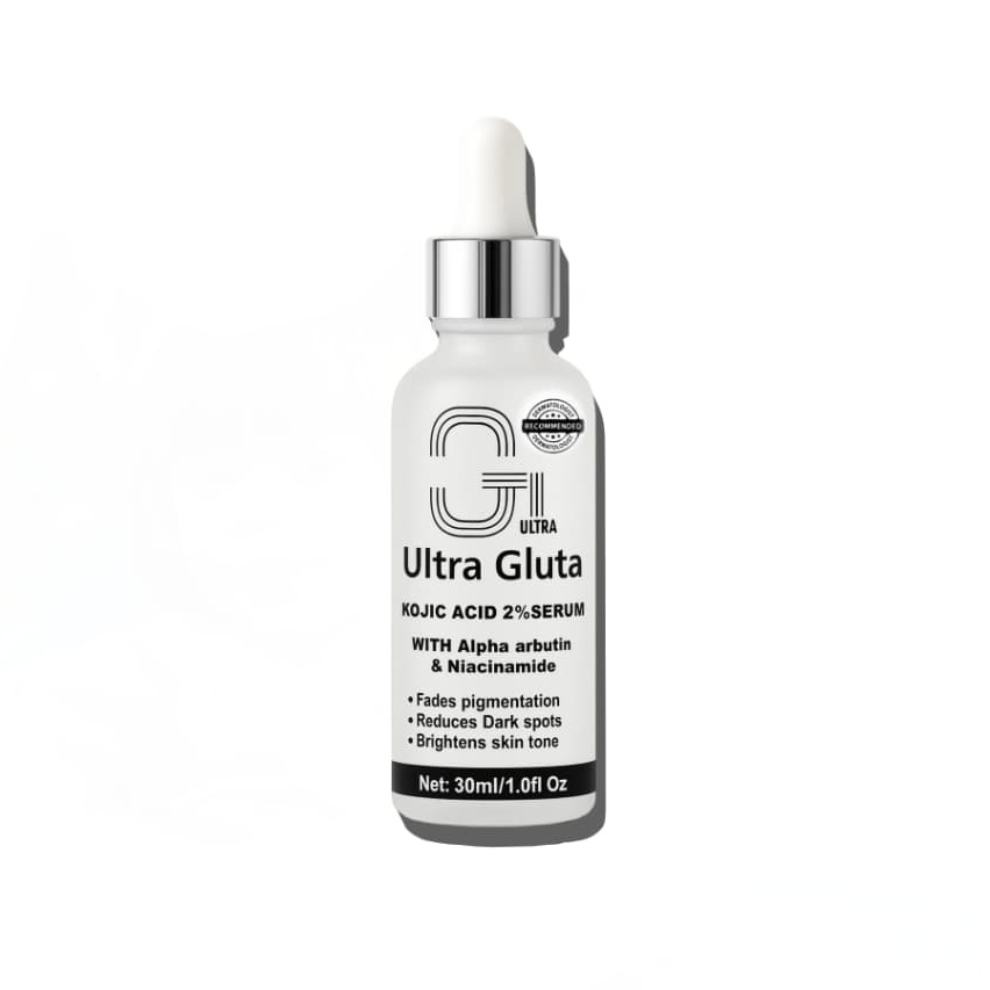 Ultra Gluta Kojic Acid 2% Serum with Alpha Arbutin and Niacinamide helps fade pigmentation, reduce dark spots, and brighten the skin tone. Suitable for all skin types, it promotes a clear and radiant complexion.